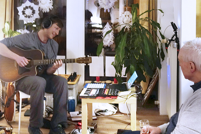 Ein ungewöhnliches Zusammentreffen zwei sehr unterschiedlicher Künstler war zu dieser Ausstellungseröffnung im Stadtteilladen zu erleben. Karl-Michael Seidel mit Fotos, Papier und Farben, die in den vorgestellten Collagen neue Blickwinkel schaffen. Dazu bot seinen akustischen Beitrag der Gitarrist Ullrich P. Peeck, der mit manuell verschiedenen Klangelementen Melodien einspielte, abmischte und mit Computereffekten angereichert zu Gehör brachte. Man konnte also live miterleben, wie er seine Klangwelten entwickelt. Damit war der Abend eine durchaus interessante und unvergessliche kulturelle Begegnung. Besonderer Dank gilt den beiden Künstlern.