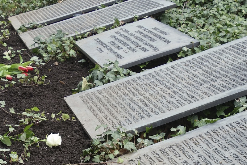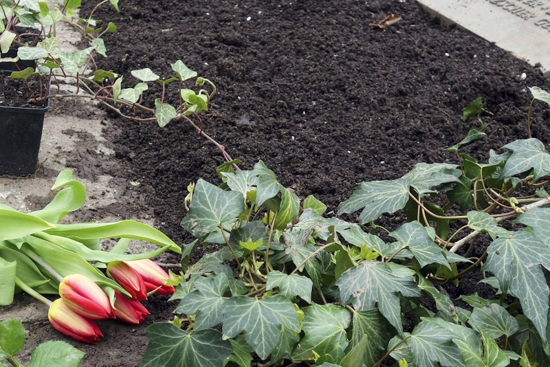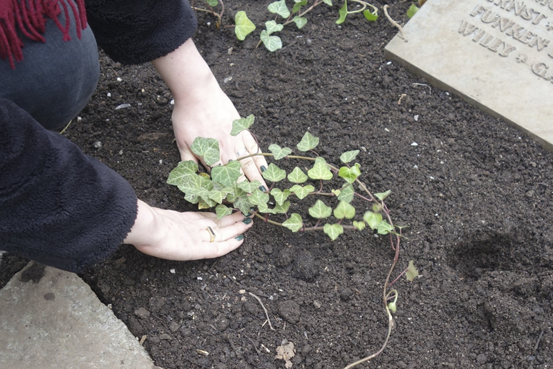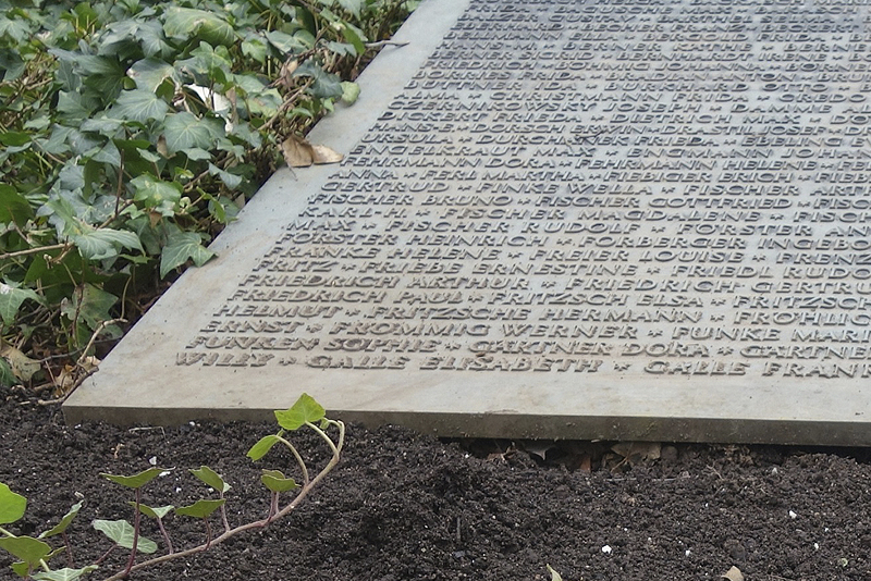 Gemeinsam pflanzten wir jungen Efeu, Symbol für die Hoffnung auf Auferstehung. Danach besuchten wir auch die Grabanlage für polnische und tschechische Zwangsarbeiter und das Grab des Dresdner Komponisten und künstlerischen Direktors des Dresdner Konservatoriums Paul Büttner >>. Mit Machtübernahme der Nationalsozialisten 1933 wurde Büttner aufgrund seiner Ehe mit einer Jüdin all seiner Ämter enthoben. In Armut verstarb er noch vor Kriegsende 1943 in Dresden. Seine Frau Eva – Publizistin, Kunst- und Musikkritikerin sowie Politikerin – überlebte das NS-Regime nur dank der Hilfe von Freunden, die sie in Kamenz verstecken konnten.