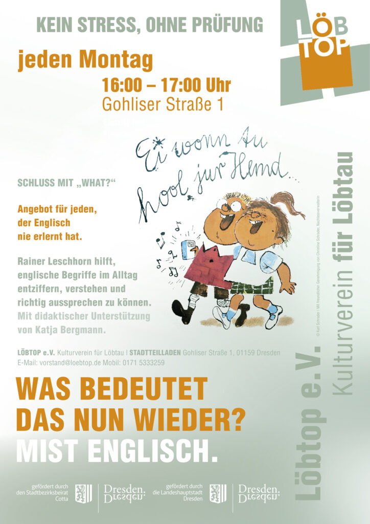 NEU für Menschen, die nie Englisch lernen konnten: immer montags 16:00 bis 17:00 Uhr im Stadtteilladen.