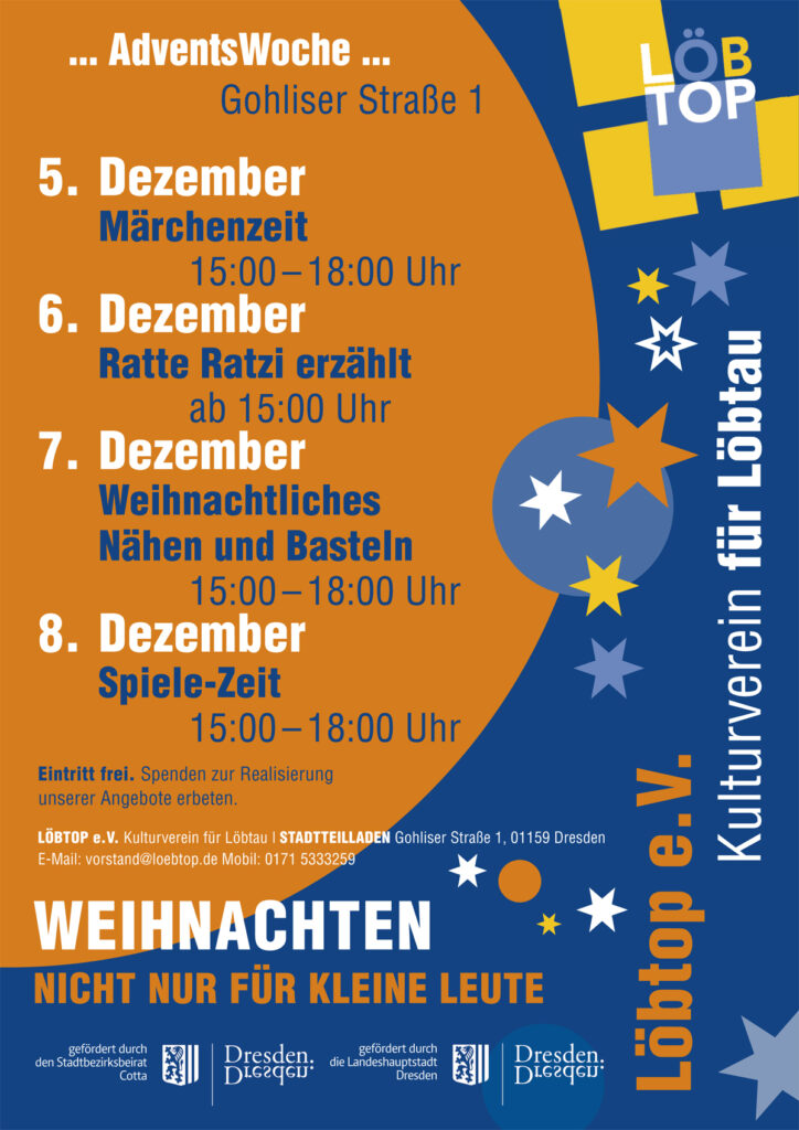 Letztlich in diesem Jahr finden diese Woche folgende Angebote statt, natürlich unter weihnachtlichen Sternen.