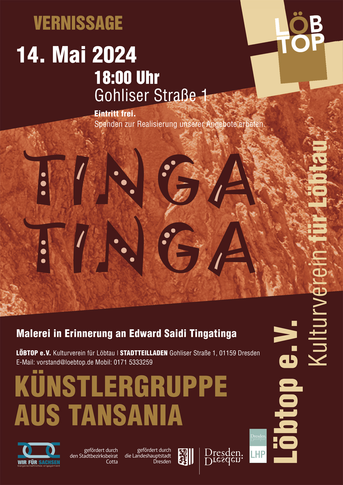 Gerade einmal 40 Jahre alt, wurde der Künstler Edward Saidi Tingatinga im Jahr 1972 von einer Polizeistreife, die ihn für einen Dieb gehalten hatte, erschossen. Eine Verwechslung, die einen schweren Verlust für die Kunst bedeutete. Seine Schüler beschlossen daraufhin, im Stil ihres Lehrmeisters weiter zu arbeiten. Sie bildeten eine „Tingatinga-Gruppe“, der sehr bald auch andere Künstler beitraten. Regelmäßig trafen sie sich zum Malen und Verkauf der Arbeiten unter einem schattenspendenden Baobab-Baum in Daressalam, der Hauptstadt Tansanias. Dieses offene “Atelier” fand große Bewunderung und sprach sich schnell herum. An der daraus folgenden Gründung der “Tingatinga Partnership” im Jahre 1977 nahmen bereits 16 Mitglieder teil. In den neuziger Jahren zählte die Gruppe bereits mehr als zweihundert Künstlerinnen und Künstler.
