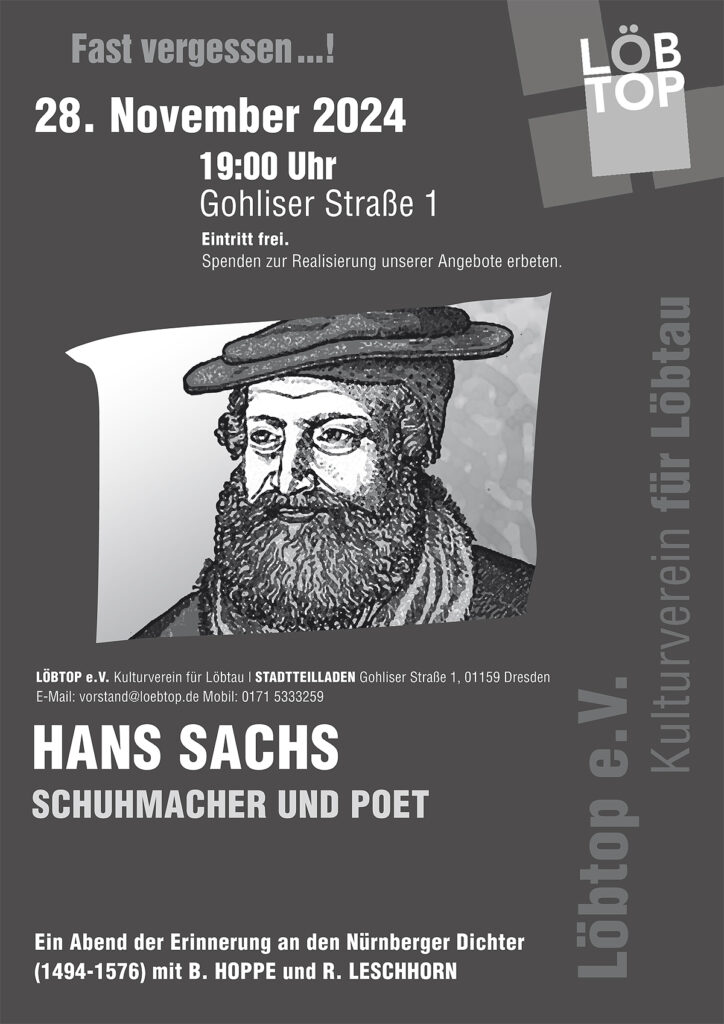 Ein Abend der Erinnerung an Hans Sachs, Schuhmacher und Poet. Herzliche Einladung in den Stadtteilladen.