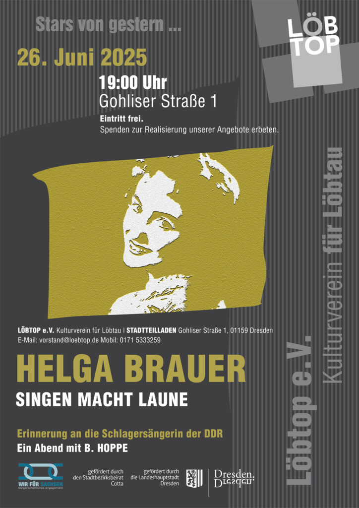 Singen macht Laune. Ein Abend über die DDR-Schlagersängerin Helga Brauer. Herzliche Einladung in den Stadtteilladen.