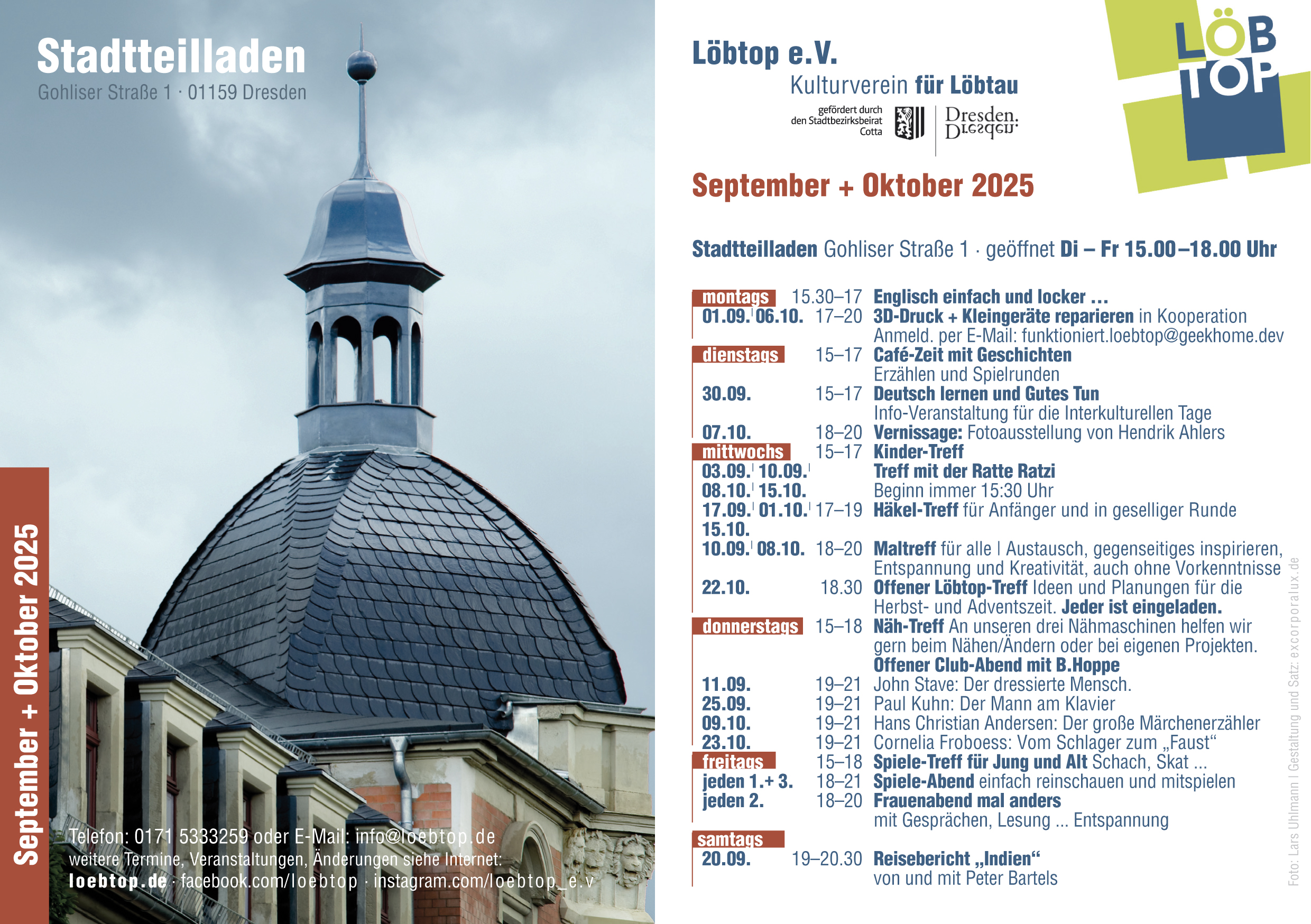 Das Programm der Monate September und Oktober für den Stadtteilladen steht fest. In den nächsten Tagen werden die gedruckten Karten an den bekannten Orten im Stadtteil zu finden sein. Wer noch eine weitere gute Adresse zum Auslegen der Karten beisteuern kann, bitte einfach per E-Mail melden.