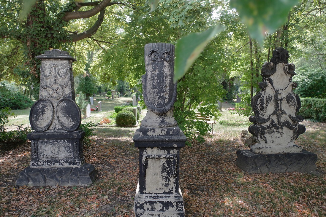 Alte Grabmale vom Neuen Annenkirchhof erinnern auf dem Alten Annenfriedhof an den zweiten Friedhof