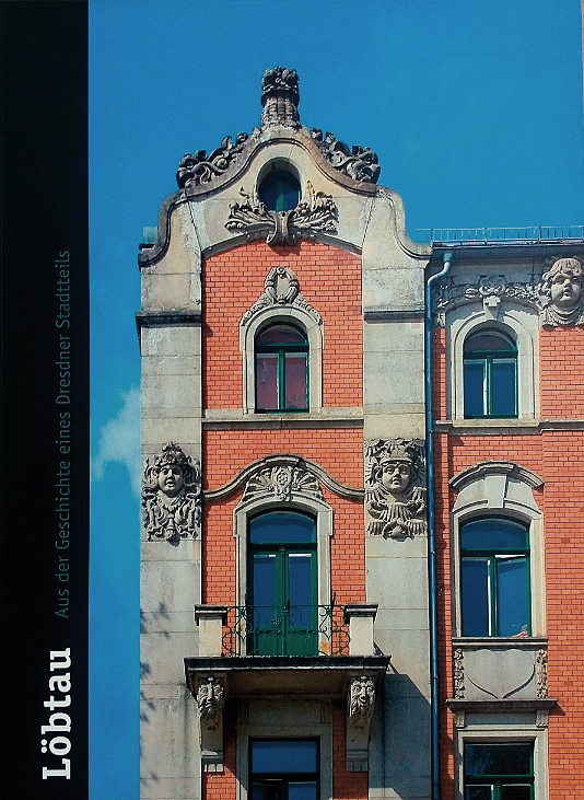 Cover des Stadtteilhefts: links ein schwarzer Rand mit weißer Schrift Löbtau, rechts ein typisches Löbtauer Mehrfamilienhaus.